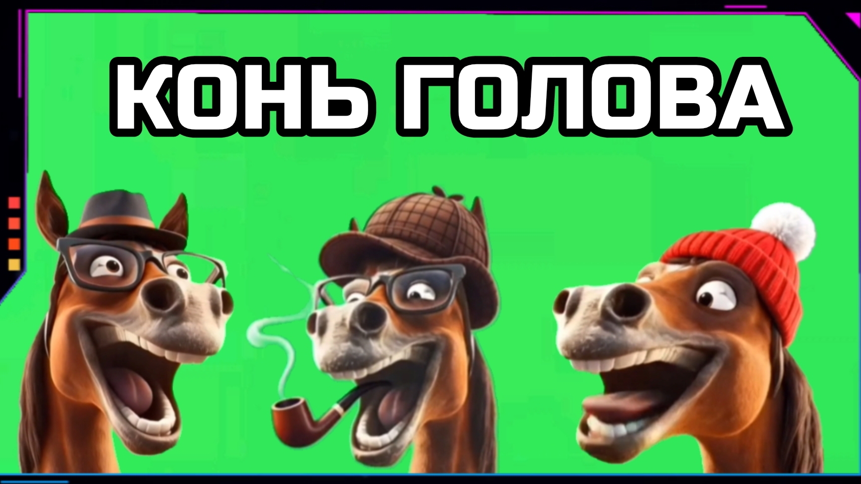ЛОШАДЬ на зелёном экране. ГОЛОВА ЛОШАДИ хромакей футаж анимация GREEN SCREEN.
