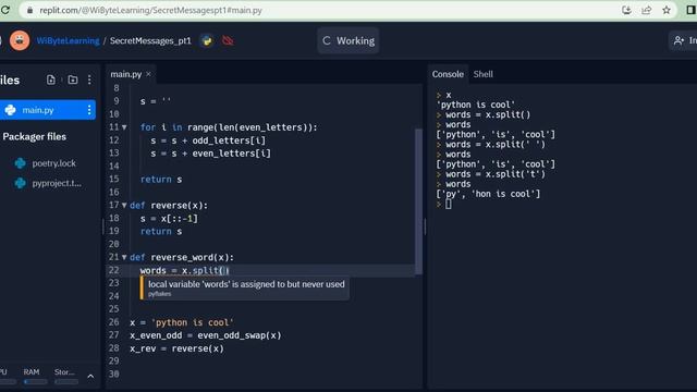 In this video, we will see how we can use the string method split() to first split the sentence into words and then use the reverse function to reverse every word of the sentence. (www.wibyte.in)