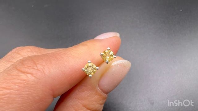 Серьги пусеты с цитрином Ювелирная огранка Диаметр камня 3 мм Застежка бабочка