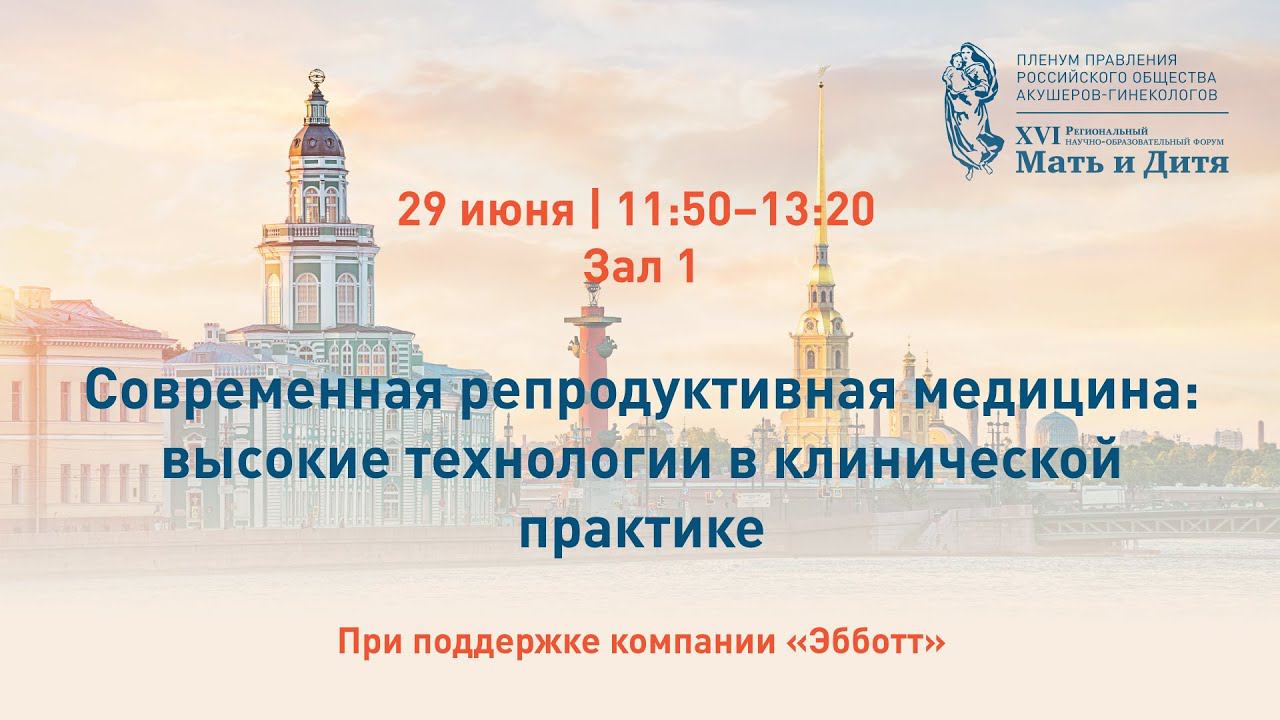 При поддержке компании «Эбботт Лабораториз» В рамках XVI Регионального научно-образовательного форума «Мать и Дитя» И Пленума Правления РОАГ 28–30 июня 2023 года ФГБНУ «НИИ АГиР им. Д.О. Отта» (Санкт-Петербург) Официальный сайт: https://mother-child.ru/region/ Программа: https://www.mediexpo.ru/fileadmin/user_upload/content/program/mdr2023-program.pdf Vk: https://vk.com/mdreg2023 Ok: https://ok.ru/group/59292879028290 Telegram: https://t.me/mediexpo