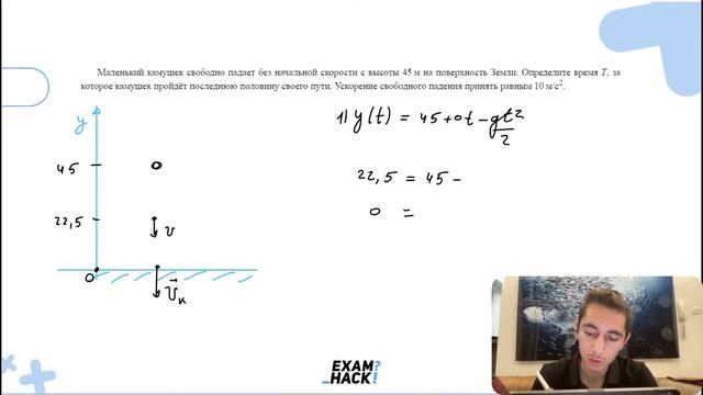 Маленький камушек свободно падает без начальной скорости с высоты 45 м на поверхность Земли - №26099