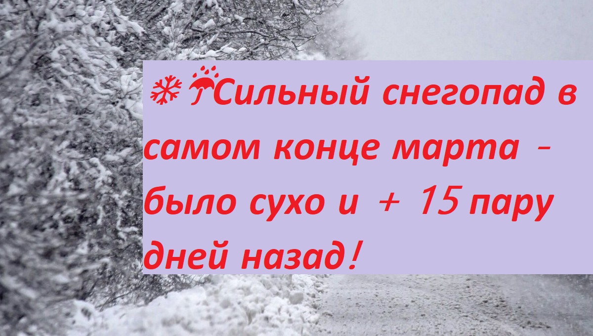 ❄️☔️Сильный снегопад в самом конце марта - было сухо и + 15 пару дней назад!