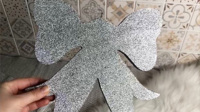 Елочное украшение БАНТИК ФИГУРНЫЙ с блестками, серебряный, пеноплекс, 25 см, Б2-250-сер