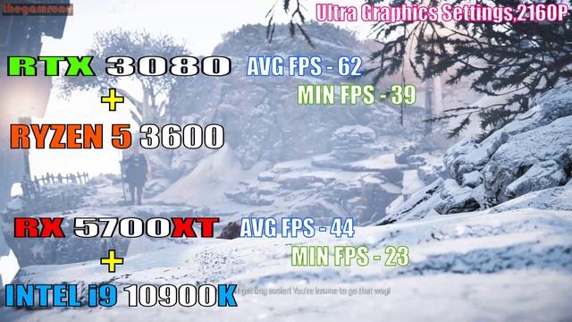 RTX 3080 + RYZEN 5 3600 vs RX 5700XT +INTEL i9 10900K ||PC GAMES TEST || 1080P || 1440P || 2160P || #ryzen53600 #i910900k #rtx3080 #rx5700xt DRIVER- Adrenalin 2020 Edition 20.9.1 GeForce Graphic driver 456.38 System OS Windows 10 pro CPU RYZEN 5 3600 @ stock - Asus Rog Strix X570 CPU INTEL i9 10900K @ stock- Gigabyte Z490 Aorus Master GPU ZOTAC GAMING GeForce RTX 3080 Trinity 10 GB GPU Sapphire RX 5700 XT Nitro+ 8GB SSD Samsung 970 EVO Plus 500GB PCIe NVMe M.2 HDD Wd Blue 4TB Desktop Hard Disk Drive RAM Corsair Vengeance 16GB RAM 3200Mhz PSU Cooler Master V1000 SMPS COOLER Cooler Master MASTERLIQUID ML360R Disclaimer: All the events, incidents and characters depicted in this video are purely fictitious and it has nothing to concern with any real drama.This video entirely based on entertainment purposes only. Any resemblance with the live or dead, or with any incident will be just a coincident and is fake, the author of the game and presenter is noting to do with that. --THANK YOU FOR WATCHING-- Your support is very important, please like and subscribe to the channel