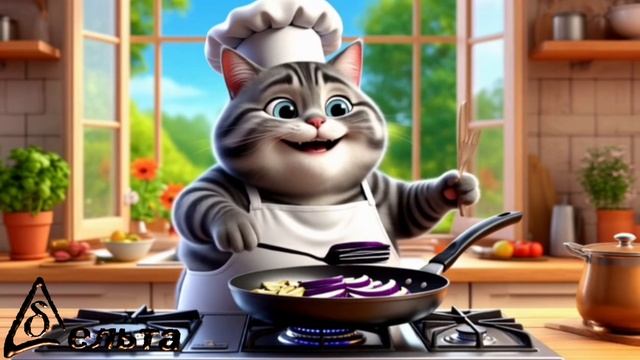 Весёлый котик показывает как готовить используя реальные рецепты. Qr code с полным рецептом приготовления в конце.