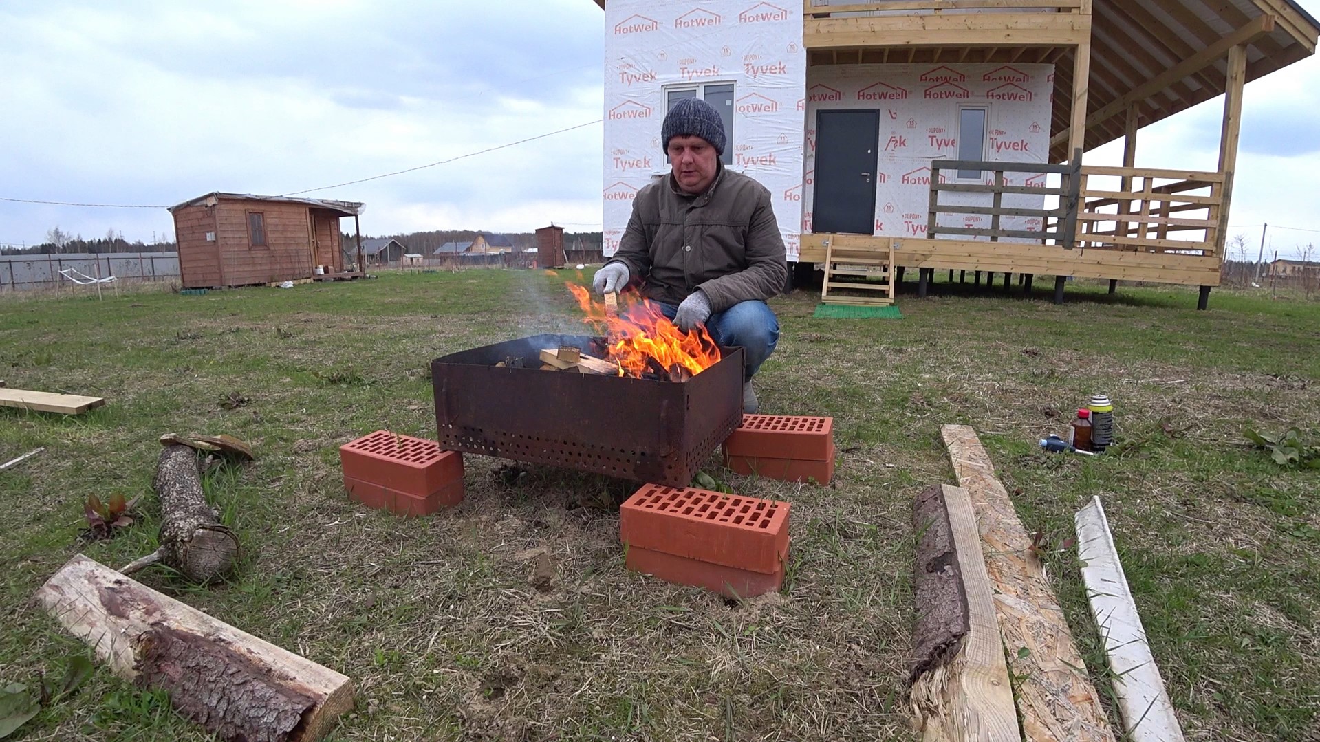 Вот и наступили майские праздники. Новая грядка, шашлык, электричество на бытовке. Новости про забор.