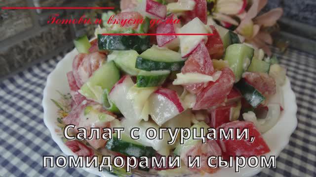 Салат с огурцами, помидорами и сыром