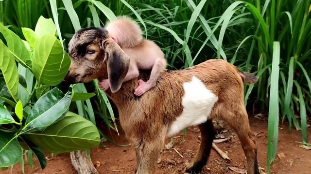 Пушистик и козлёнок,на прогулке