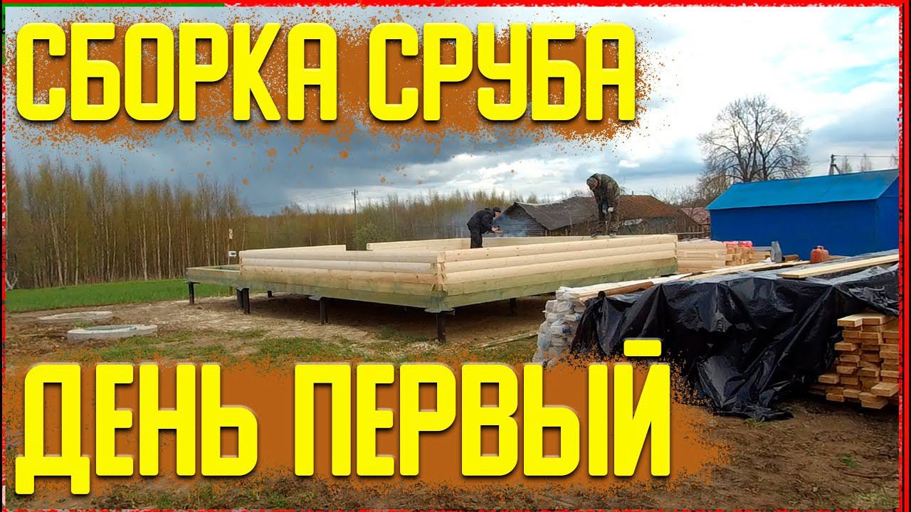Первый день.Собираем сруб дома 6х6 на нагель из 140х140 профилированного бруса камерной сушки.