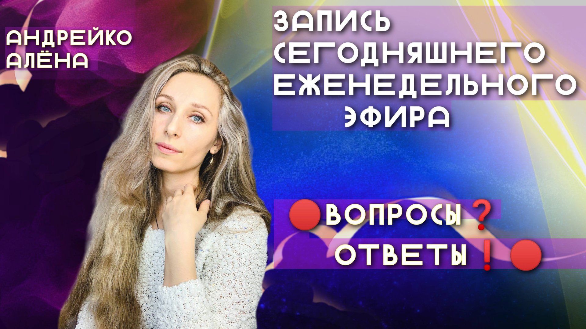 Запись сегодняшнего ЕЖЕНЕДЕЛЬНОГО ЭФИРА 🔴ВОПРОСЫ❓ОТВЕТЫ❗️🔴 📣 Прямой эфир буду вести по воскресеньям в моём Телеграм канале по ссылке👉 t.me/aleona_and... 💬 Вопросы стоит присылать моей помощнице Светлане Кузнецовой svetochka_55@internet.ru Вопрос, описывающий личную ситуацию, стоит присылать в формате: имя, дата рождения, время и место рождения. Мои курсы👉 andreiko-alena.ru/courses/