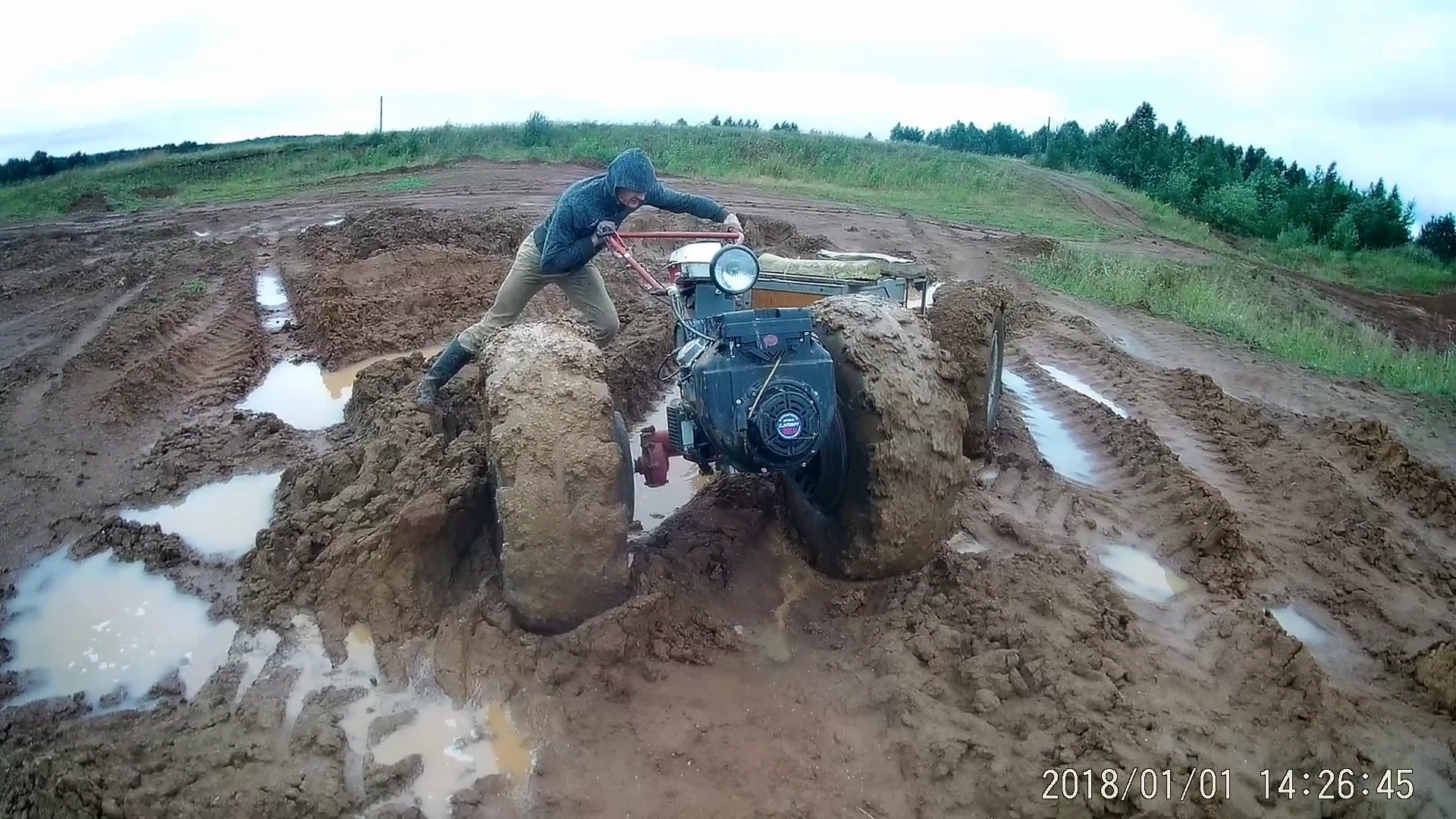 Поехали на болотину но воды не нашли, потоптали рогоз, покатались по полям и поехали месить глину