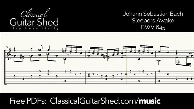 https://classicalguitarshed.com/gf1/ FREE PDF Sheet music book - 30 and Easy(ish) Classical Guitar Favorites. Over 150,000 other guitarists have downloaded and use CGS guitar books. Get yours free here: https://classicalguitarshed.com/books PDF Download of this piece: https://www.classicalguitarshed.com/sm-bach-sleepers-awake/ https://classicalguitarshed.com/membership/ Click this link to learn more about our full course for classical guitar. It's organized, structured, and strategic from the beginning, so you make the most of your time and avoid injury and frustration. Build your basics, fill the gaps, and rise to more advanced levels of playing. Free sheet music library: https://classicalguitarshed.com/music Free tutorials: https://classicalguitarshed.com/cgs-archives Structured classical guitar course: https://classicalguitarshed.com/membership Are you learning classical guitar or would like to learn classical guitar? ClassicalGuitarShed.com can help you on the journey. If you want to rise to new levels in your playing, it just takes time and strategic work. To play classical guitar well, you need to know: * how to hold and touch the guitar - form and positioning * how to move your fingers and hands - efficient, clean, and fluid * how to learn pieces - reading music, understanding what you see, ingraining, polishing * how to craft the music so it is beautiful - swells and fades, rhythm, touch * how to practice so all these skills improve over time and don't go away At the root of beautiful playing is a solid technique (aka “the way your hands move”). You may have beautiful music in your head, but if your hands can't play it, it won't come out of the guitar. But bad technique puts a limit on your playing. Speed, tone quality, and control can suffer. Good technique gets stronger and more instinctive with every practice. It forms the bedrock foundation for your music. And you may want to understand music so you learn it more easily and it makes more sense. This can help you avoid the excess frustration and dismay that comes with shoddy practice and prolonged confusion. But playing the notes is not enough. Like an actor bring words to life, we breathe life into our pieces. And we can do this in an organized way, day in and day out, reliably. Great musicians can play wonderfully in any mood. They do not rely on emotions. Instead, they create music that affects our emotions. This is a trained skill, not an inborn talent. Playing classical guitar is a long-term study. It's something we do in our homes as part of our days. We play for ourselves, for the quality it adds to life. We may enjoy playing guitar for others, but most of the time we are alone with our work. There are methods and formulas for great practice. We can use our time well so that see more progress. We can fix the problems and erase the mistakes. And we can enjoy conquering the plentiful challenges that classical guitar music offers. If you plan to play classical guitar for any length of time, it is worth it to get help. It's not something we can do on our own, like folk music. I have a structured and organized course to help you play classical guitar. If you like, you can learn more here: https://classicalguitarshed.com/membership/ If you would like to hear me (Allen Mathews) playing, visit my other youtube channel: http://www.youtube.com/allenmathews/ Or check out these other YouTube videos: 11 lessons for beginners: https://youtu.be/vEau0pJdgqc Guitar basics: https://youtu.be/e51Z-50GzDo Classical guitar nails: https://youtu.be/z0jz1ms_AlM How to change classical guitar strings: https://youtu.be/AKsVF72Tsdg Most common errors: https://youtu.be/kPBqjgF9-l8 How to practice sight-reading on guitar: https://youtu.be/IZU3BZBRq2A Note-perfect playing: https://youtu.be/GbCQr1_v_9w How long does it take to learn guitar?: https://youtu.be/MJhSCXzwqCI Right-hand guitar exercises: https://youtu.be/lYv0fwHIU_w The perfect left hand on guitar: https://youtu.be/GwUsWeIyhkg Slow practice: https://youtu.be/fZTKRxtMwyU Classical guitar scales (5 shapes): https://youtu.be/cAFbEYqvYSU Guitar tremolo technique: https://youtu.be/nV2HUMx1su0 I/M alternation technique: https://youtu.be/8Jat_Bxme5c Scale variations: https://youtu.be/ukF5ukFjKS0 How chords and scales are related: https://youtu.be/j9K01pYwIRY Guitar squeaks: https://youtu.be/8wd9tsnNSLM How to hold a guitar: https://youtu.be/fxDoRaRoiUQ Classical guitar without fingernails: https://youtu.be/FAPB1aGdka0 Classical on acoustic: https://youtu.be/wGDVuRw7RGE Rasgueado technique: https://youtu.be/YL-5EhkZVck Avoid rest strokes: https://youtu.be/ahurGVdOA5E Sergio Assad left-hand workout: https://youtu.be/24vOFOOtVgk Focal dystonia: https://youtu.be/-2MeXB6LxQ4uu Bar chord tips: https://youtu.be/PWroXMukbjI
