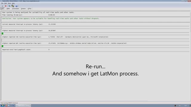 A low DPC latency was achieved, and i do some tests while recording. Specs are: Windows 7 x64 - largely stripped down, +/- 30 processes running Gigabyte H110M-A motherboard - grabbed USB drivers from Intel (drivers in gigabyte's website are not the latest ones) Intel i7 6700 cpu - always running at 100% 16gb 2133MHz ram memory cheap SSDs for the OS and storage Nvidia RTX 2060 gpu - last drivers for Win7, no geforce experience, MSI mode on Logitech G Pro mouse - without its software. Polling rate = 1000 hz, which i could lower M-Audio Fast Track MKII (usb audio interface) - it does not (and will not) have proper drivers for Win 10 Note to myself / Stuff to try out: - Disable Turbo Boost - Disable Hyper Threading - Disable Speed Shift - Set permanent 0.5ms timer resolution - Try 2 points higher ram latencies - Move network driver away from core 0 - Check hal process and ISR - Prio / Process Lasso, set windows processes to custom affinities and priorities You can try my configuration files for Windows 7 (make a backup first!) Disable services (for desktop PCs): https://www.mediafire.com/file/1mn7p74av7fbolh/Windows_7_-_Config_Servicios.bat/file Disable services (for notebooks): https://www.mediafire.com/file/grt87ekhe5gz2s2/Windows_7_-_Config_Servicios_%2528Notebook%2529.bat/file (these 2 above are similar, but one keeps the WLAN service enabled for WiFi) Disable extra services: https://www.mediafire.com/file/aw8y0bfqd1qdth9/Windows_7_-_Deshabilitar_Servicios_Adicionales.bat/file Energy power plan (for desktop PCs): https://www.mediafire.com/file/0r0ev5pgnwz6ea4/Windows_7_-_Energ%25C3%25ADa_Desktop.7z/file Energy power plans (for notebooks): https://www.mediafire.com/file/iey4sqwnxfz5ctw/Windows_7_-_Energ%25C3%25ADa_Notebook.7z/file Uninstall trash Windows 7 updates: https://www.mediafire.com/file/3yl9xrjb6cpfpj1/Windows_7_-_Desinstalar_Updates.bat/file Disable/uninstall some Windows 7 features: https://www.mediafire.com/file/lq57mmacjcatsl7/Windows_7_-_Desinstalar_Caracter%25C3%25ADsticas.bat/file Disable User Account Control: https://www.mediafire.com/file/tpqj5y2epst08ig/Windows_7_-_DisableUAC.reg/file Also throw these in a cmd: bcdedit /set nx AlwaysOff fsutil behavior set disablelastaccess 1 fsutil behavior set disable8dot3 1 fsutil 8dot3name strip /s /v C: