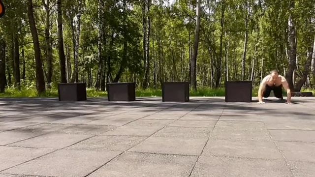 Взрывные отжимания с перепрыгиванием через тумбу. Импровизация на кольцах