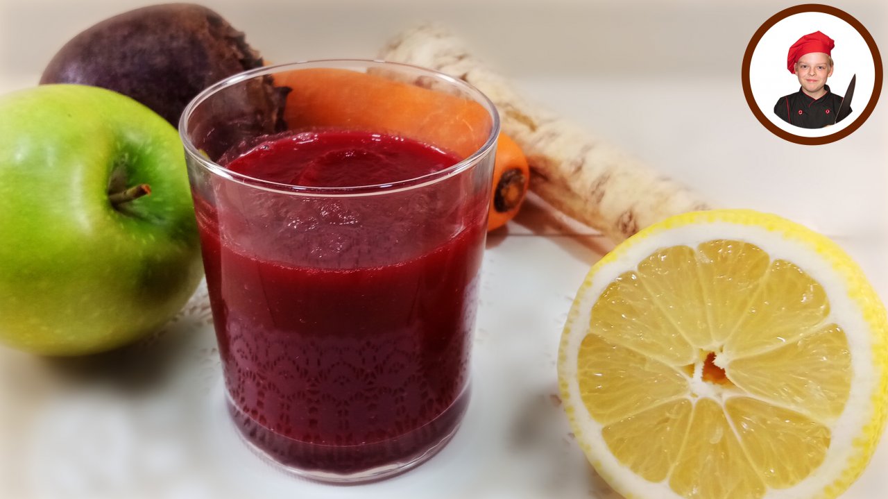 Витаминный коктейль считается одним из самый полезных рецептов. Его легко приготовить и состоит он из ингредиентов доступных в любое время года. Хотя корни этого рецепта уходят в древние славянские традиции здорового питания. А сейчас очень популярно следовать правилам ЗОЖ здорового образа жизни. Ингредиенты на 2 порции: - Свёкла отваренная - 1/2 шт. - Морковь свежая - 1/2 шт. - Яблоко зеленое - 1/2 шт. - Лимон - 1/2 шт. - Корень хрена - 1/2 ч. л. - Вода - 1/2 стакана Дополнительно потребуется блендер. Сложность приготовления - легко #коктейль #рецепты #Апухтин #кулинария
