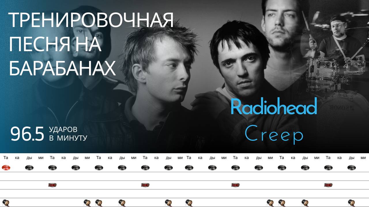 Radiohead - Creep / 96.5 bpm / Тренировочная песня для барабанов