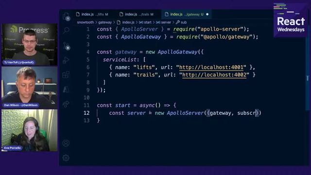 GraphQL is one of the fastest-growing technologies in the front-end and React worlds. Eve Porcello (@eveporcello on Twitter), author of Learning GraphQL, as well as a very awesome GraphQL workshop - https://graphqlworkshop.com/, came to teach us all about GraphQL! Eve is actually a previous guest of React Wednesdays. The first time around she taught us the basics of GraphQL, so this time around she got into some more advanced GraphQL content—including new GraphQL features like defer and stream. You can check the first video here: https://youtu.be/MCpTs7ST748 Some handy links you might encounter in the video: ➡️https://studio.apollographql.com ➡️https://moonhighway.com/ ➡️https://www.oreilly.com/library/view/learning-graphql/9781492030706/ Let's dive into it! ======================= Some helpful timestamps: ======================= 00:00 - Intro 00:15 - Meet Eve Porcello 01:40 - What is GraphQL? 04:23 - How does a GraphQL query work? 07:36 - Live coding and demo 17:00 - Gateway magic 24:07 - Let's test this! 31:30 - Breaking an API in two --- React All-Day is a long-format stream of fun and learning with React experts, and live coding from familiar names and faces from around the React world! Eight awesome guests covered eight exciting topics from sessions on testing, data management, full-stack frameworks to programming concepts, and more. --- React Wednesdays is a weekly chat show with the best and brightest from the React world. Join us live every Wednesdays to hang out and ask questions. Learn more about the show and upcoming episodes at https://www.telerik.com/react-wednesdays. ________________________________________________________________________ Follow us on social and say “Hi!” ?Twitter: @KendoUI ?Facebook: KendoUI ?️Catch up with our streamers & guests on social media! Follow TJ @tjvantoll Follow Dan @DanWilson Follow Eve @eveporcello ?Watch our streams on https://twitch.tv/codeitlive or https://www.telerik.com/react-wednesdays #ReactWednesdays #ReactJs #GraphQL
