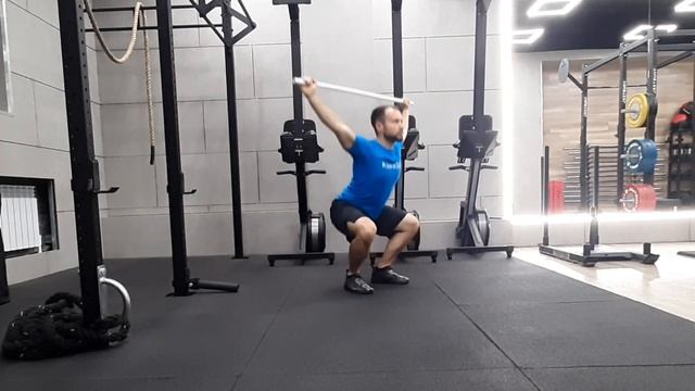Разминка. Провороты плеч, приседания с трубкой над головой, мобилизация грудного отдела
