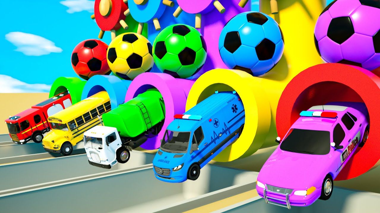 Мультики про машинки - Детские песенки Пять маленьких обезьянок прыгают на кровати Прыгают в бассейн