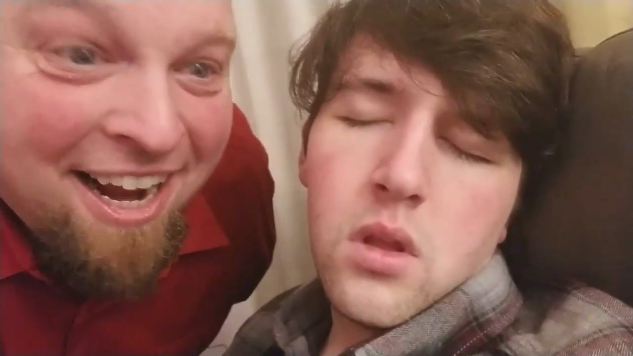 Папа этого парня заметил, что сын уснул и поцеловал его в щёку, повергнув сына в шок. #прикол #розыгрыш #новыйгод #уснул #папа #сын