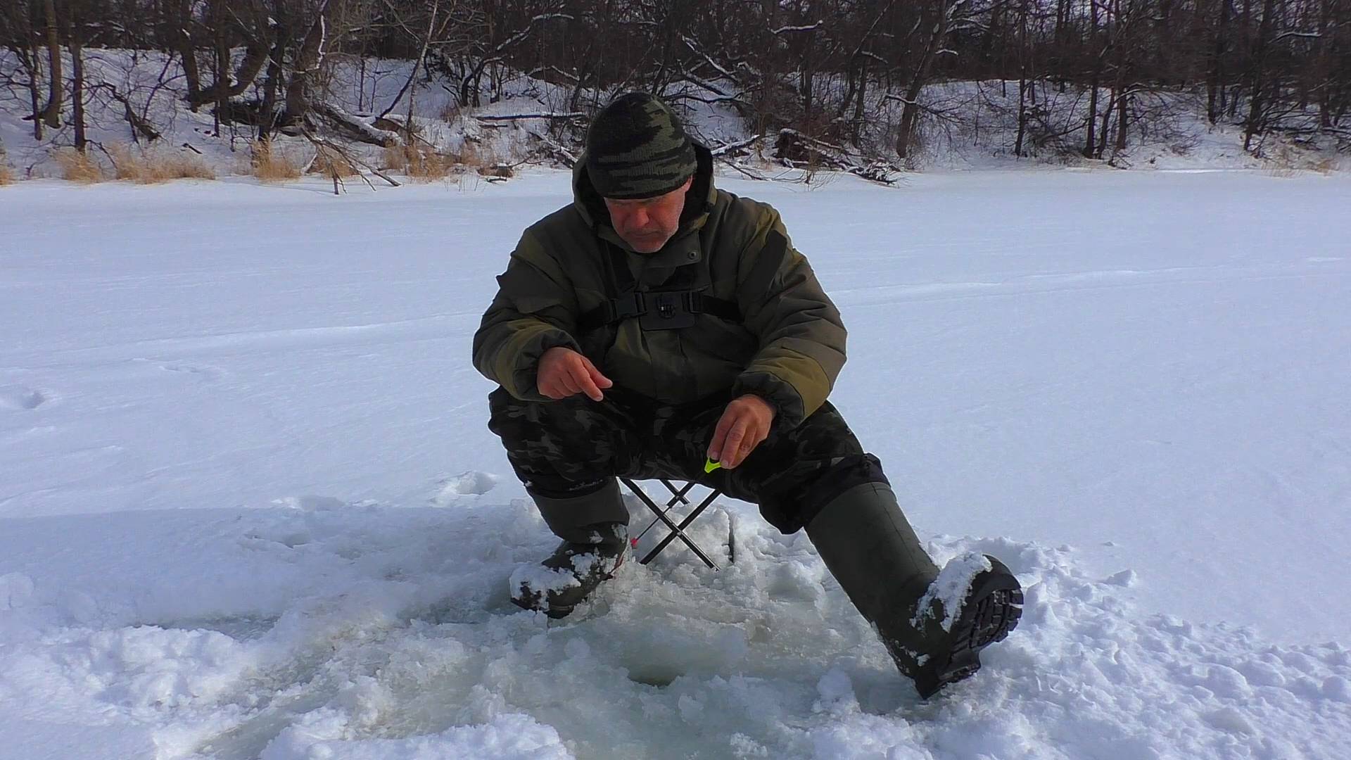 Очередная рыбалка на речке в конце февраля!