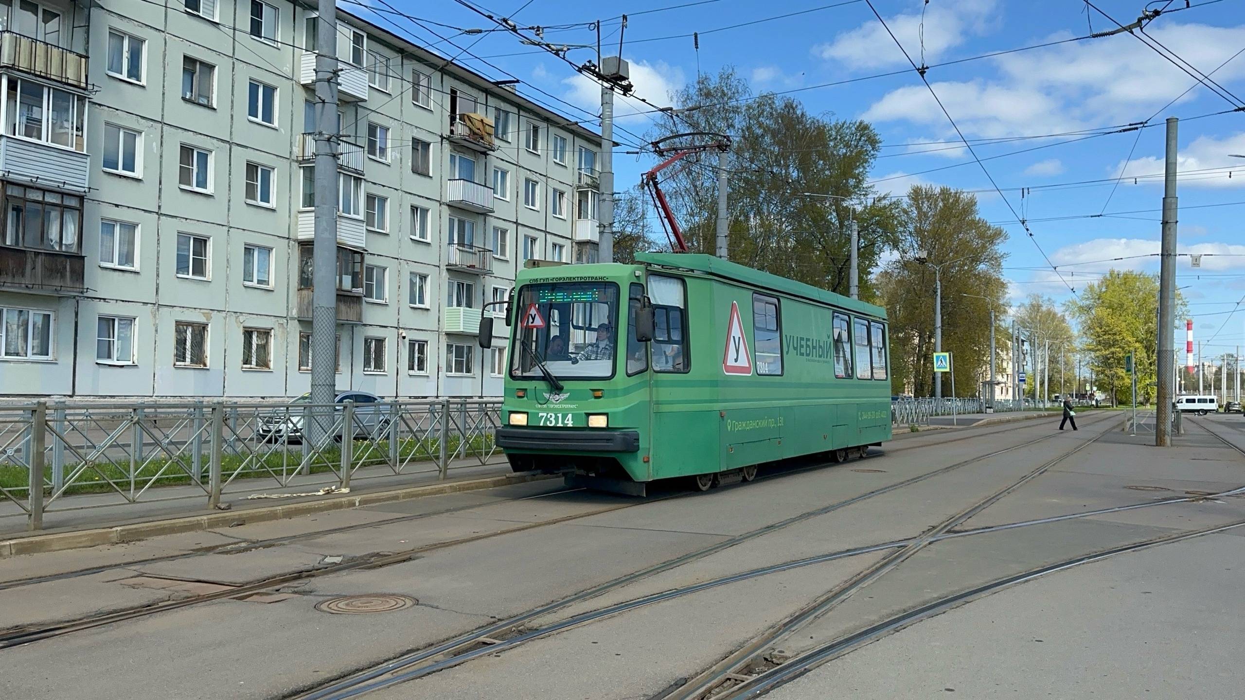 "Старичок!" Учебный трамвай ПС39А2 №7314 на Гранитной ул., май 2025 года