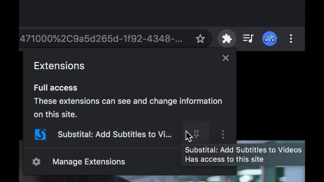 Because of the new features of Chrome Browser, extensions are well-hidden. You are only allowed to pin selected number of add-on. For full faster and easier access, pin Substital to your chosen browsers!