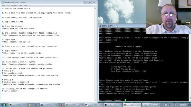 Whether you bought your lab gear online or have a switch that's down and can't come up, you need to know the Cisco ROMMON procedure. It's different on different platforms, but the process is similar. Here, I use ROMMON on a 2950 switch.