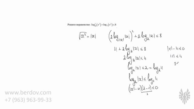 Решение несложного, но довольно нестандартного логарифмического неравенства, содержащего модуль. Заодно научимся работать с модулем и выносить степени из-под знака логарифма (при условии, что в логарифме находится функция, а не константа).