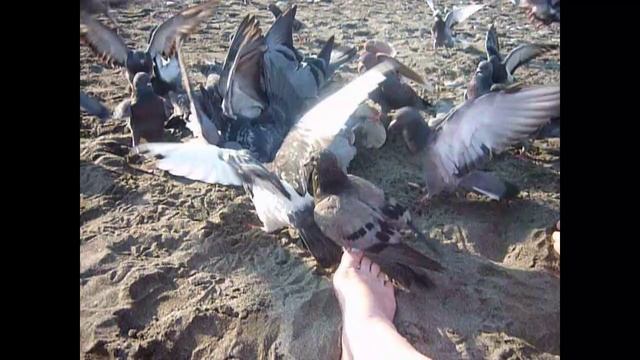 Сочинский центральный пляж в октябре. Ручные голуби
