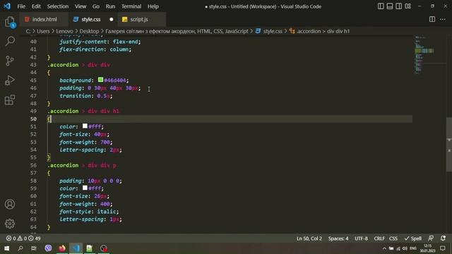 Галерея світлин з ефектом акордеон, HTML, CSS, JavaScript