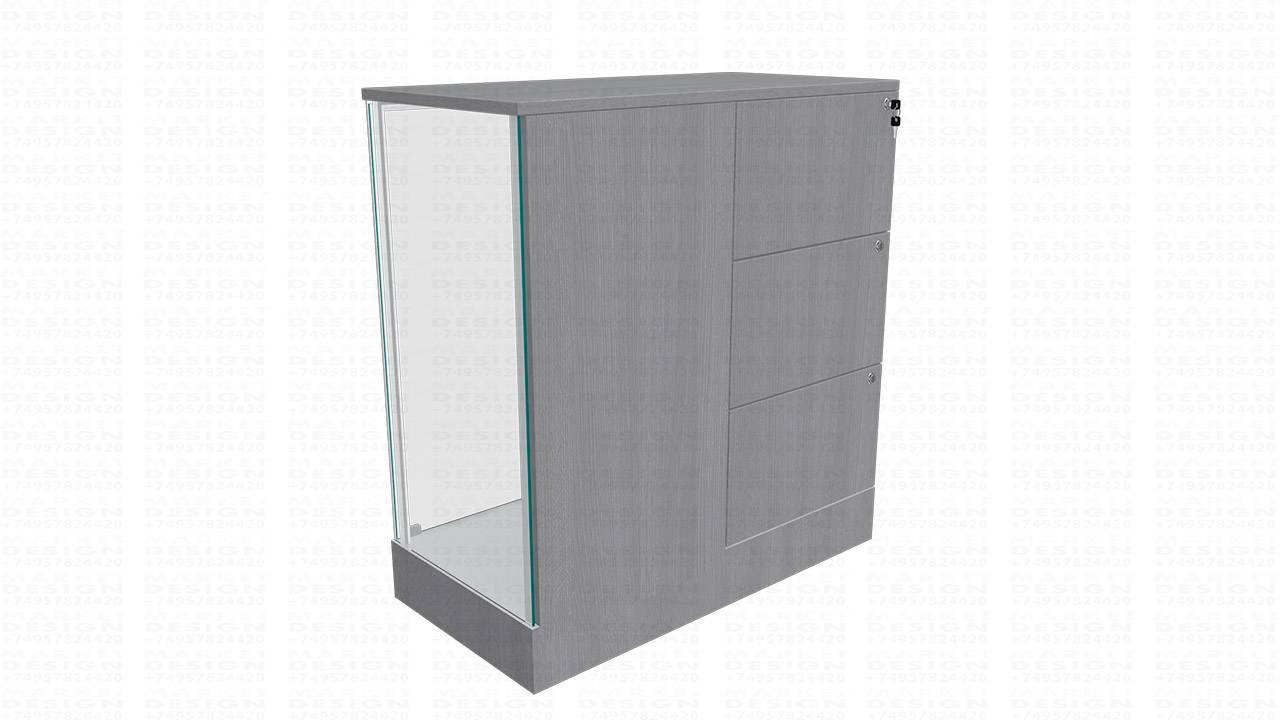Прилавок с тремя ящиками и экономпанелью, внутри стеклянной части эко-панель, в другой части 3 выкатных ящика. Толщина стекла 6 мм, обработка края стекла полировка (евро кромка). Большой выбор расцветок. Стеклянная дверь распашная, закрывается на замок. Изготовлен из мдф 18мм.. В прилавке предусмотрены точечная подсветка. https://www.market-design.ru/vitriny/vitriny-nord/