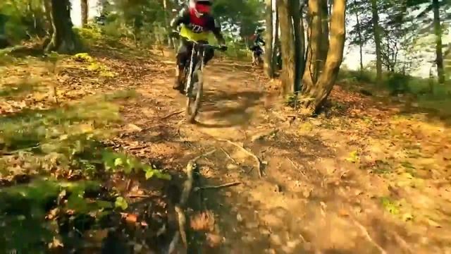 трюки на горном велосипеде в лесу