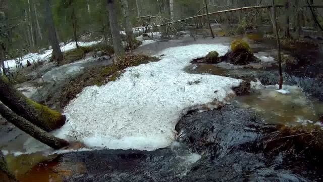 Пошли в лес к роднику за питьевой водой. Весенний лес. Ручей. Накануне был шторм. Опять ворчу. Антиреклама рюкзака.