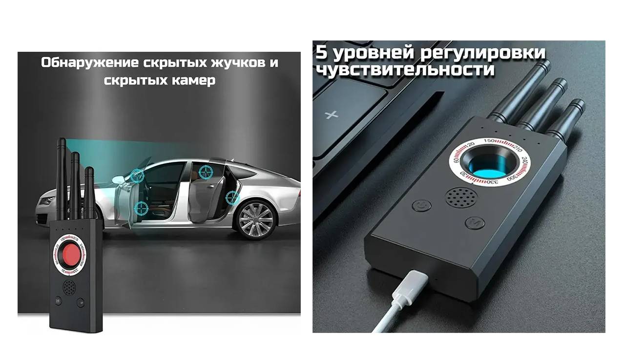 Портативный антижучок Hunter 007-Guard поможет найти скрытые камеры и прослушивающие устройства в любом помещении. Просто включите прибор и пройдитесь по комнате — он обнаружит даже самые миниатюрные камеры, независимо от того, работают они или нет. Детектор ловит все современные виды беспроводных передатчиков — от сотовых жучков до Wi-Fi камер. Шкала мощности сигнала подскажет, где именно искать источник. Можно настроить чувствительность, чтобы не реагировал на помехи от бытовой техники. Работает до 5 часов без подзарядки — хватит на полную проверку офиса или квартиры. Заряжается от обычного USB-кабеля, как телефон. https://recdvr.ru/product/portativnyj-detektor-zhuchkov-i-skrytyh-kamer-hunter-007-guard/ - доставляем курьером до двери или в пункты выдачи по многим городам РФ. Также высылаем заказы по почте наложенным платежом и другими сервисами доставки абсолютно по всей России. Технические характеристики Диапазон частот: 1 МГц — 6,5 ГГц Дальность обнаружения радиопередающих устройств: 5 см – 10 м Дальность обнаружения камер: 10 см – 10 м Чувствительность: 4 уровня регулировки Питание: аккумулятор Емкость аккумулятора: 200 мАч Время автономной работы: до 5 часов Зарядка: Micro USB Размеры: 170×50×20 мм Вес: 100 г Комплектация Антижучок, кабель для зарядки, инструкция на русском языке, упаковка.