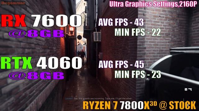 RX 7600 vs RTX 4060 || PC GAMES TEST || 1440P || 2160P || #rtx4060 #i913900k #rx7600 System OS Windows 10 pro CPU INTEL i9 13900K @ stock - Gigabyte Z790 AORUS Ultra GPU NVIDIA GeForce RTX 4060 8GB GPU AMD Radeon RX 7600 8GB SSD Samsung 980 PRO 2TB PCIe 4.0 NVMe M.2 HDD WD Blue 4TB Desktop Hard Disk Drive RAM G.SKILL Trident Z5 32GB DDR5 DRAM 6000MHz (2X16GB) - CL40 PSU Cooler Master V1000 SMPS COOLER MSI MAG CORE LIQUID C360 Disclaimer: All the events, incidents and characters depicted in this video are purely fictitious and it has nothing to concern with any real drama. This video entirely based on entertainment purposes only. Any resemblance with the live or dead, or with any incident will be just a coincident and is fake, the author of the game and presenter is noting to do with that. --THANK YOU FOR WATCHING-- Your support is very important, please like and subscribe to the channel