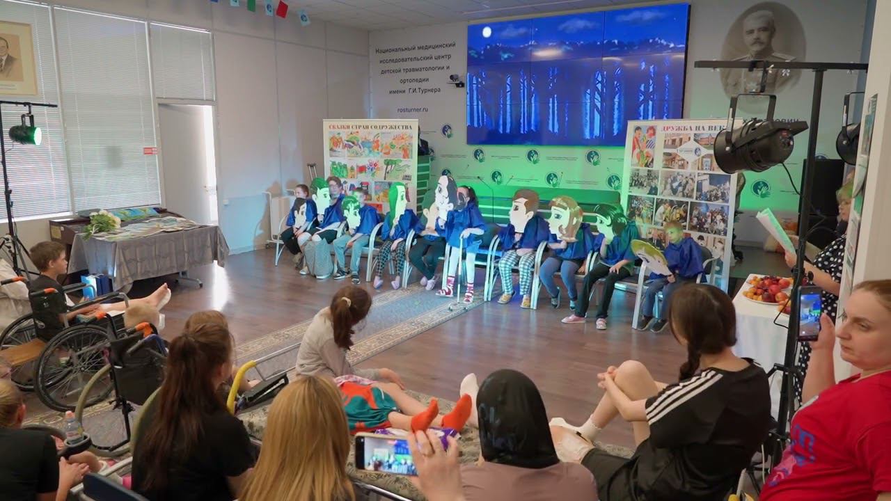 Ко Дню защиты детей, Национальный медицинский центр имени Г. И. Турнера и Санкт-Петербургский театр марионеток им. Е.С. Деммени представят спектакль “Волшебное дерево”. В своё время Евгений Сергеевич Деммени и Генрих Иванович Турнер поверили в то, что искусство и медицина могут идти рука об руку, помогая детям преодолевать болезнь и находить радость в жизни. Так родилось понятие «куклотерапия». Сегодня театр им. Е.С. Деммени и НМИЦ им. Г.И. Турнера продолжают сотрудничество, находя новые пути творческого взаимодействия. В Медицинском Центре им.Турнера ежегодно получают высококвалифицированную медицинскую помощь более 8000 детей с различными травмами и заболеваниями костно-мышечной системы со всей территории России и ближнего зарубежья. Новый культурно-реабилитационный проект Национального центра “Дружба народов стран СНГ: сказко - и куклотерапия” направлен на поддержку и развитие детей, проходящих лечение в центре им. Г.И. Турнера. Спектакль “Волшебное дерево” — центральное событие проекта. В театре были созданы куклы, декорации, костюмы и музыкальное оформление спектакля. Режиссер-постановщик – Алексей Уставщиков, художник – Игорь Бирло, музыкальное оформление - Татьяна Алешина, актриса - Екатерина Шумакова, видео-контент создал Сергей Педан. Автор сказки: Наталья Капцова. Сюжет спектакля рассказывает о путешествии детей к самим себе, их встрече со своими тёмными сторонами и поиске ответа на вопрос о том, как поделить плод Волшебного дерева, чтобы сохранить дружбу. Спектакль был поставлен за 3 дня и пьеса полностью адаптирована для детей с особенностями развития. Если Вы хотите повторить этот опыт в своей организации и поставить спектакль о дружбе народов в своем учреждении, пожалуйста пишите нам pr-rosturner@yandex.ru. ______________________________ On Children's Day, the G. I. Turner National Medical Center and the E.S. Demmeni St. Petersburg Puppet Theater will present the play “The Magic Tree". At one time, Evgeny Sergeevich Demmeni and Heinrich Ivanovich Turner believed that art and medicine could go hand in hand, helping children overcome illness and find joy in life. This is how the concept of "doll therapy" was born. Today, the E.S. Demmeni Theater and the G.I. Turner NMIC continue to cooperate, finding new ways of creative interaction. At the Medical Center named afterEvery year, more than 8000 children with various injuries and diseases of the musculoskeletal system from all over Russia and neighboring countries receive highly qualified medical care. The new cultural rehabilitation project of the National Center “Friendship of the Peoples of the CIS countries: Fairy tale and puppet therapy” is aimed at supporting and developing children undergoing treatment at the G.I. Turner Center. The performance “The Magic Tree" is the central event of the project. Dolls, decorations, costumes and musical design of the performance were created in the theater. The director of photography is Alexey Ustavshchikov, the artist is Igor Birlo, the musical arrangement is Tatyana Alyoshina, the actress is Ekaterina Shumakova, the video content was created by Sergey Pedan. The author of the fairy tale: Natalia Kaptsova. The plot of the play tells about the children's journey to themselves, their meeting with their dark sides and the search for an answer to the question of how to share the fruit of a Magic tree in order to preserve friendship. The play was staged in 3 days and the play is fully adapted for children with special needs. If you want to repeat this experience in your organization and put on a play about the friendship of peoples in your institution, please write to us pr-rosturner@yandex.ru .