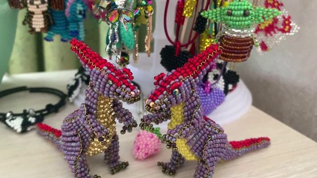 Динозавр из бисера / фигурки из бисера / объёмное бисероплетение / плести из бисера