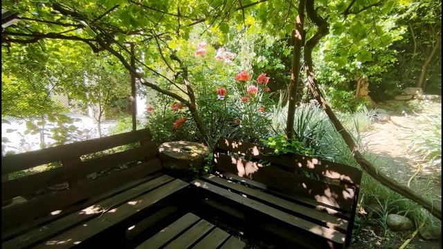 Красивый крымский сад, цветы, декоративные растения в Мисхоре Гаспра Большая Ялта Крым