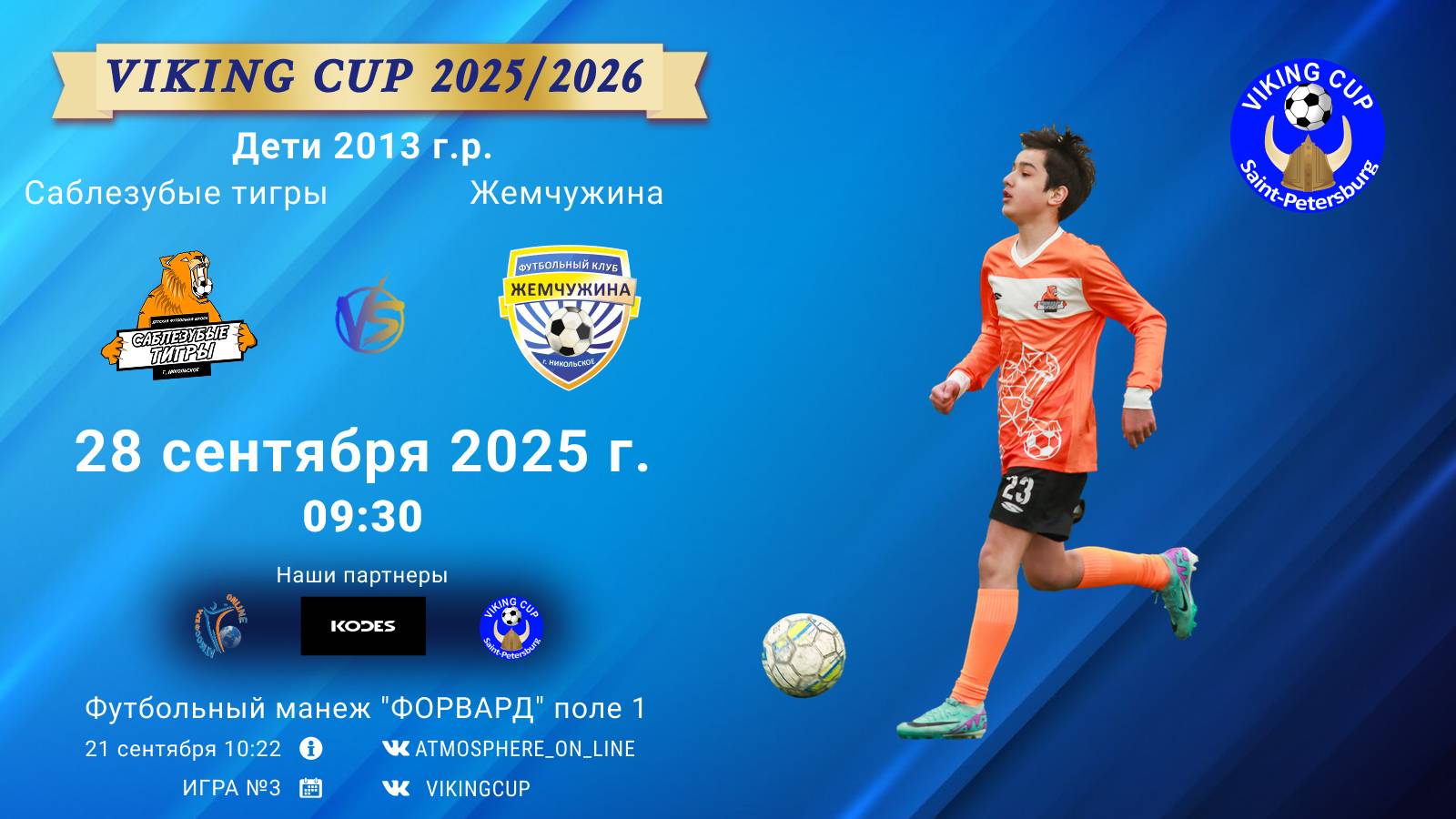 VIKING CUP среди команд 2013 г.р. (U12), Поле 1 28 сентября 2025 САНКТ-ПЕТЕРБУРГ, ФЦ "Форвард" ФК "СаблезубыеТигры" - ФК "Жемчужина"/VIKING CUP, Игра №3, 28-09-2025 09:30