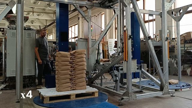 портальный укладчик мешков на паллет, палпетайзер бумажный пакет с зашивкой паллетоукладчик