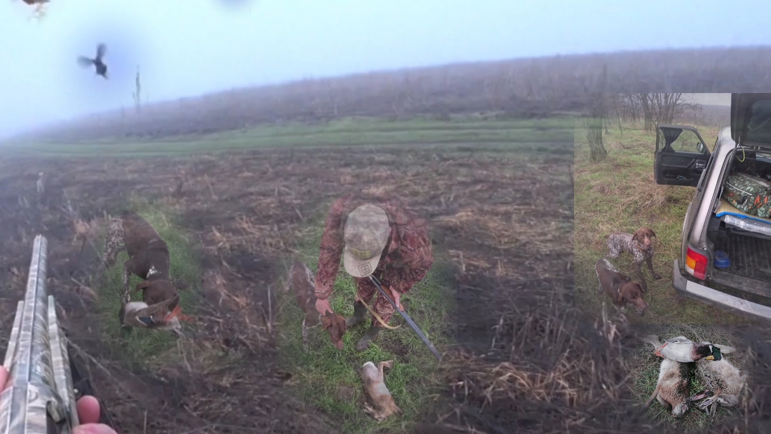 ЗАЯЦ ПРЯМ ИЗ ПОД НОГ. СЕЛЕЗЕНЬ ПРЯМ НА ВЫСТРЕЛ. Охота с Курцхаарами.