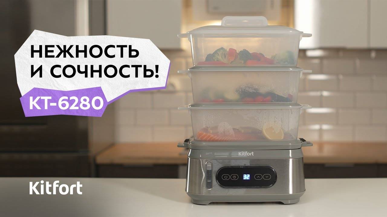 Пароварка КТ-6280 приготовит вам вкусные и питательные блюда, сохранив все витамины и полезные микроэлементы, содержащиеся в продуктах. Продукты, приготовленные в пароварке, получаются нежными, мягкими и сочными. Пароварка оснащена современной панелью управления. Дисплей показывает время до окончания работы. «Отложенный старт» устанавливает время, когда прибор начнёт работу. Кнопки уменьшения и увеличения регулируют время приготовления и время отложенного старта. Где купить: https://kitfort.ru/catalog/parovarki/parovarka-kitfort-kt-6280/