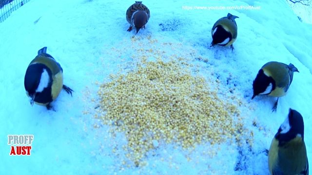 Синички и воробьи кушают на скрытую камеру