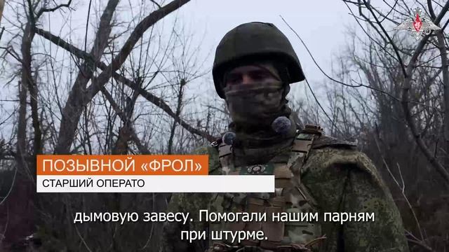 Расчеты БПЛА «Молния-2» группировки войск «Запад» поддержали действия штурмовых групп на Краснолиманском направлении. 📱 Один из штурмовых отрядов запросил установку дымовой завесы для скрытного выдвижения на опорный пункт ВСУ. В течение короткого времени операторы подняли в небо БПЛА с дымовым зарядом. 💬 О выполненной задаче рассказал старший оператор расчета «Молния-2» с позывным «Фрол». Ссылка на первоисточник: https://t.me/mod_russia/59436 Лицензия: Creative Commons Attribution 4.0 International Автор видео: Министерство обороны Российской Федерации.