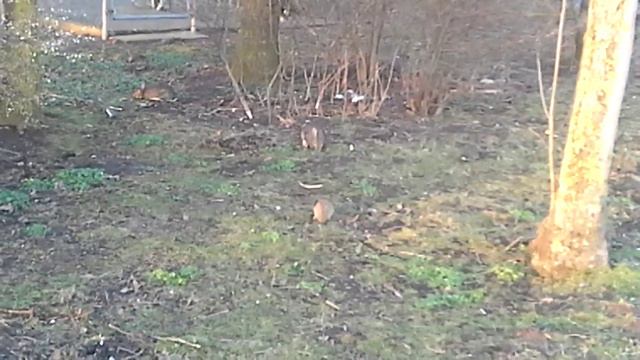 Дикие кролики пасутся прямо на паркинге возле заправки.