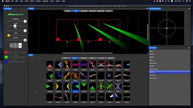 Live laser shows in Fiesta for Mac - cross faders and direction control
