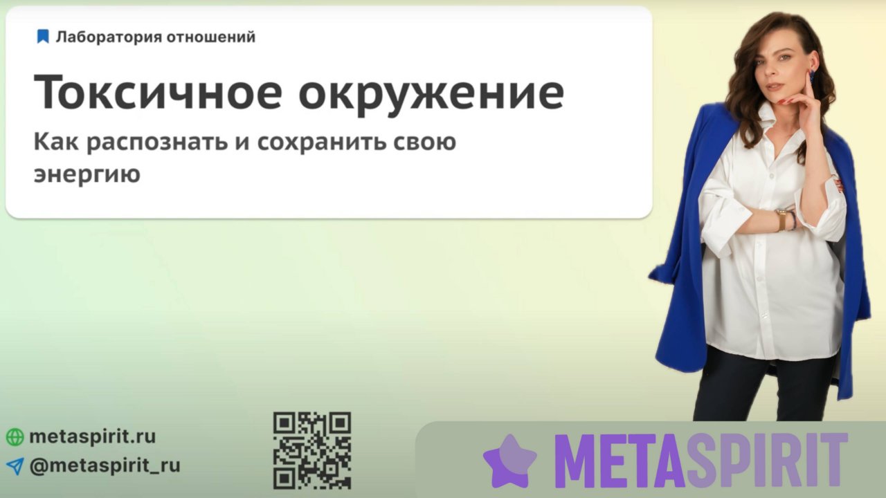 ℹ️ Разобрали: 🟡 Кто такие токсичные люди и окружение? 🟡 Типы таких людей 🟡 Главные характеристики и признаки 🟡 Что забирают такие люди в нашей жизни? 3️⃣ Практические техники защиты 1️⃣ Письменная практика для анализа окружения 😮 А в дополнение раскрытия темы ⤵️ Подготовили: 1️⃣ Чек-лист: 10 признаков токсичного общения (Чтобы с первого слова распознавать манипуляцию.) 2️⃣ Шпаргалка: экологичные фразы для защиты границ (Готовые формулы ответов, чтобы говорить уверенно и без чувства вины.) 🚾 Работа кипит, уроки записываются. Наша платформа с полноценными уроками по трансформации сознания скоро откроет двери. Чтобы не пропустить старт — подписывайтесь на канал и жмите на колокольчик! Все самое интересное в нашем Канале: 🚀 Telegram: https://t.me/metaspirit_ru С заботой о Вас, место Силы, Вдохновения и Трансформации МЕТАСПИРИТ⭐️ #токсичныелюди #психологияотношений #манипуляция #энергетическиевампиры #какзащититьсебя #психологическаязащита #саморазвитие #психология #метаспирит #границыличности #токсичноеокружение #какраспознать #защитаотманипуляций #психологияобщения #чеклист #практика #самопомощь #духовныйрост #трансформация