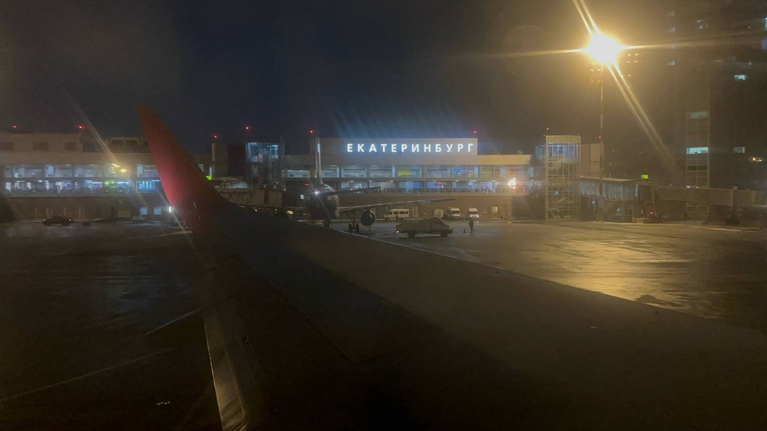 "И частичка рассвета!" Аэропорт Кольцово SVX - Аэропорт Пулково LED ночью (из окна самолёта Boeing)