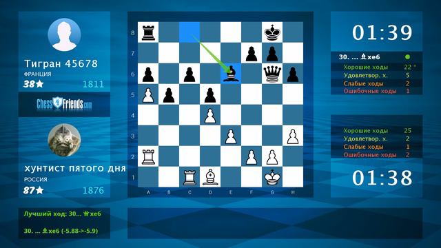 Анализ шахматной партии: хунтист пятого дня - Тигран 45678, 1-0 (по ChessFriends.com)